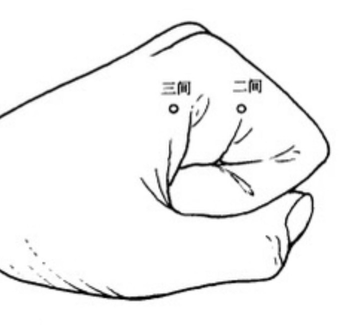 二间穴同样属于手阳明大肠经,为大肠经的荥穴,荥穴主“热”,清热泻火功效显著,能精准针对肝火旺盛引发的热性症状,与合谷穴搭配使用,可形成“疏肝+清热”的双重作用,强化调理效果。